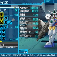 「アームウェア」「レッグウェア」では、装備するものによってパラメータや戦闘時に使用可能なアクションコマンドが変化します。さらに、アニメに登場するモビルスーツはもちろん、組み合わせることでゲームオリジナルのモビルスーツを作成できます。