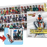 予約特典は、いきなり50ライダーが使える「禁断の50ライダー即開放ステッカーブック」に決定。50体のライダーから好きなライダーのステッカーを剥がして、そこに記載されたパスワードを入力することで即使用可能になるステッカーブックとなっています。