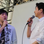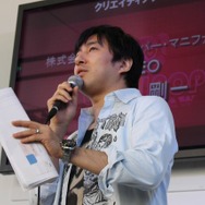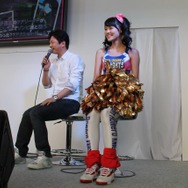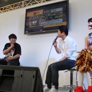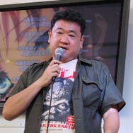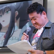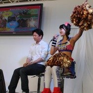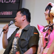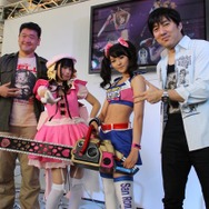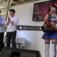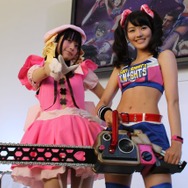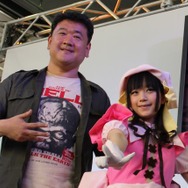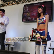 ここでサプライズゲストとして「これはゾンビですか?」の角川書店プロデューサーである蜂屋誠一氏と、登場キャラクター・ハルナのコスプレが登場しました。蜂屋氏は『ロリポップチェンソー』とのタイアップに対し「最初にお話しがあったときは、チェーンソーでゾンビを斬るといってもぬるいゲームだろうと思ったんです。ところがすごい演出で、ぜひお願いしたいと思いました」と経緯を説明します。