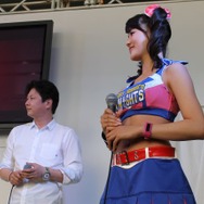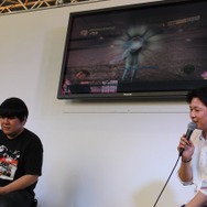 イベントステージの司会は本作のキャラクターボイスも担当した渡辺明乃さんが務め、壇上には須田氏、週刊ファミ通の長田英樹氏のほか、ジュリエットのイメージガールとして川本まゆさんが登場しました。川本さんはアメリカ出身にくわえて極心空手を得意としており、須田氏を相手に組み手も披露。ジュリエットのイメージにぴったりの様子に拍手が巻き起こりました。