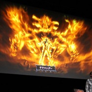 このほか共闘要素の紹介として、マルチプレイのムービーが上映されました。メンバーは4人で、ケルベロスを相手に魔法を使った戦闘を繰り広げます。途中で1人が戦闘不能となってしまうものの、別のプレイヤーが即座に生贄として「サラマンダー」を発動すると、強力な攻撃でケルベロスを撃破。生き残った3人のプレイヤーは、ケルベロスを「救済」するか「生贄」とするかを選ぶことが可能となります。今回は生贄で一致しましたが、ユーザー同士で異なる選択もありうるため、その場合はどうなるのかが気になる部分です。