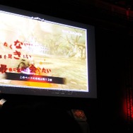 本作の楽曲は光田康典氏と鋒山亘氏によるもので、両名が作曲したものを実際に会場内で披露することに。光田氏が紹介した、主人公が手にする本のテーマ曲は「囚われている主人公の絶望感やかすかな希望をこめて作りました」と、美しいボーカルの中にも悲しみが感じられるようなものとなっています。これまでにない世界観のために何度も書き直した苦労もあったものの、気に入っているとのことです。稲船氏は「光田さんらしい、繊細で切なくて、少しだけ希望があるような部分がすごくいいですね」と絶賛。