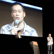 鋒山氏は、巨大なモンスターとのバトル曲という、対照的な楽曲を紹介。非常に迫力のあるサウンドですが「苦しい経験を経て外見が非常に醜くなってしまったモンスターにも、その中に人間としてのピュアな魂の叫びがあるだろうと、そんな思いを込めて書きたいなと思いました」と語ります。迫力と繊細さを両立させるために試行錯誤をしたといいます。「心に突き刺さるようなものを書いてほしいというのがあって、そういった部分をしっかり取り入れながらバトル曲の迫力もあり、コンセプトをしっかりと理解していただけてます」と稲船氏もコメントしました。現在作曲中のものには、海外のフルオーケストラやフルコーラスによるレコーディングも控えているとのことです。