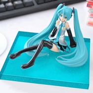 そして既にご存じの方も多いと思いますが、セガプライズからは実に約2年ぶり「初音ミク フィギュアーFairy of Musicー」が現在展開中です。今回はミクさんがお座りポーズで立体化。台座はCDケースにぴったりサイズになっています。全1種類。