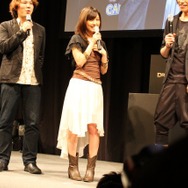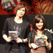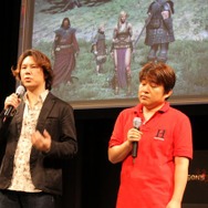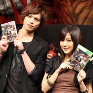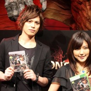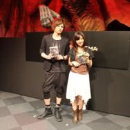 さらに、完成のお祝いとして俳優の山本裕典さん、歌手/女優の真野恵里菜さんが駆けつけました。ゲームが大好きだという2人は、本作の体験版や迫力のある映像に大興奮した様子。開発スタッフがエディットした真野さん風のポーンを本人が微調整し、山本さんをイメージして作成した覚者によるプレイムービーも上映。まさにゲームの中に入ったような演出に、山本さんは「ゲームの主人公になるという、男の夢が叶いました!」と大満足した模様で「発売したら“役者業”と“覚者業”を両立させます」とコメント。真野さんは「色んなゲームをやりましたが、こんなに映像がきれいでキャラクターエディットが豊富なものは初めてです。他のプレイヤーの皆さんと情報交換もしてみたいですね」と意気込みを語りました。