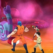 また前作の5倍以上に増えたサポートキャラクターたちと、そのサポートアクションも一部解禁。「小松」はグルメスパイザーを使い、スパイスの粉末で全能力をパワーアップさせる効果を発動させます。新キャラの「リン」はフレグランスショットで、味方全体の攻撃力をアップさせることができます。「マンサム」はパワー系キャラ。フライパンチで全身の力を込めた強力なパンチを放ち、大ダメージを与えます。そしてゾンゲのサポートアクションは、勢いをつけた斧の一撃。それほど強くないようですが、敵をひきつける能力は天下一品かもしれません。