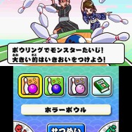 「ミニボウリング」も、ホラー・ドラゴン・ようかいと、3種類のレーンが登場。的が常に動いているので、タイミングを見計らってすべての的を壊しましょう。3DSを傾けるとミニボウリングのレーンも傾きます。