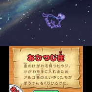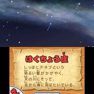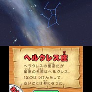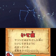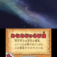 「プラネタリウム」では、3DS本体を上下左右に動かして星空を見ることが可能。上画面の中央に星座がある状態でしばらく待っていると、その星座が何かわかります。12星座は星空にイラストが表示されます。