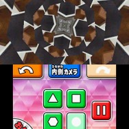 シンプルな「万華鏡」では、△□などにタッチすると、上画面の万華鏡の形が変わります。台紙から好きなシートをはがして、好きな砂色を選び、オリジナルの「砂絵」を描くこともできます。