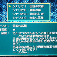本作では、世界にさまざまな「勇者」たちが存在し、自由気ままに旅をしています。自国を慕う献身的な「勇者」もいれば、自国のことを良く思っていない「勇者」もいます。「シナリオ1 伝説の武器」では、そんな「勇者」に「でんせつのけん」を授けて、世界に恐怖を与える「魔王」を討伐させることが目標です。