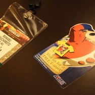 今年のバッジスポンサーは任天堂とアトラス(Index Digital Media)。任天堂はバッジの紐の部分にWii Uとニンテンドー3DS、そしてNintendoのロゴを入れています。アトラスは『ペルソナ4』をアピールするということで、名前の部分に「クマ」が描かれています。取り出すと、ブースでTシャツが配布されることが書かれていました。