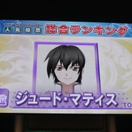 本日の参加者からは、29位にガイアス、23位にパスカル、続いて15位にシェリア、14位にレイヴン、12位にガイがランクインしました。トップ10内には、10位にジュード、9位にリタ、8位にロイド、7位にゼロス、6位にミラ、5位にアルヴィン、4位にルークとなっており、なかでも9位のリタ役の森永さんは「同情票?!」とコメントし、5位のアルヴィン役である杉田さんも「本人が1番信じられません」と、高い人気に驚きを隠せない様子です。