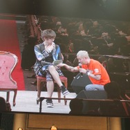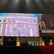 毎年恒例となった人気投票の結果発表のコーナーへと移ります。2日では「理想の弟妹部門」「マスコット部門」が発表しており、3日は「総合ランキング」「理想のパートナー部門」の結果が公開となりました。登壇者は、それぞれ順位に応じた椅子へと座ることとなり、用意されたのは30~21位向けの「ござ」、20~11位向けの「箱馬」、10~4位向けの「普通の椅子」、3~1位向けには「豪華な椅子」となっています。