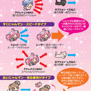 自機は「ぶるにゃんマン」、「すくにゃんマン」、そして新キャラ「めいにゃんマン」という3キャラから選ぶことができます。それぞれ攻撃方法や移動速度などが異なり、シナリオも別々のものになりますので、3キャラ全てのクリアを目指しましょう。