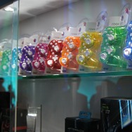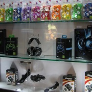 Aftergrowの主力商品はスケルトンのコントローラーだということで、プレイステーション3、Xbox360、Wiiなどの互換コントローラーがスケルトンになって、さらにライトを内蔵して光る仕様となったものが多数展示されていました。ここのコンパニオンさんもスケルトンをイメージした衣装でした。これはなかなかカッコいいかもしれません。