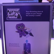 本タイトルは手裏剣で物陰から姿を現す忍者に向かって手元のタブレットをスライドすることで打ち出される手裏剣で倒すゲームとなっています。