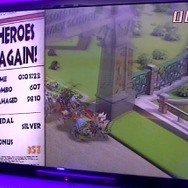 さてさて、デモプレイは次々に中ボスクラスの敵が登場する形で進行しました。ボスや雑魚をヒーローたちで取り囲んで、通常攻撃や合体攻撃でタコ殴りにしていきます。ボスを倒すまでの時間とコンボと被害ダメージで金銀銅のメダルがもらえ、次のボスへと戦いが移行。ボスを数体倒したところで、巨大ロボットが出現。腕に飛び乗っての部位攻撃へと続いていきました。