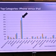 リビングのテレビもさることながら、今後の成長市場はタブレットだとペリー氏は語りました。冒頭で示したWikiPadとの提携もそのための施策です。「近い将来にタブレットの販売台数はXbox360を凌駕するでしょう」(ペリー氏)。そこでユーザーが求めているアプリはゲームで、特に北米ではその傾向が顕著です。