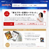 前回行われたNintendo Directで告知されていた「新セプター応援カードセット」プレゼントキャンペーン。これはニンテンドー3DSソフト『カルドセプト』を2人で購入した人を対象に、『カルドセプト』の世界に登場するカードをモチーフにした「新セプター応援カードセット」をもれなくプレゼントするというもの。