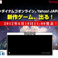 「バンダイナムコオンラインとYahoo!JAPANの新作ゲーム、出る!」と大きく書かれており、発表は2012年6月18日14時に行われるとのことです。