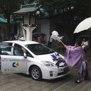 加藤神社で安全祈願する「戦国無双タクシー」 全 5 枚 拡大写真