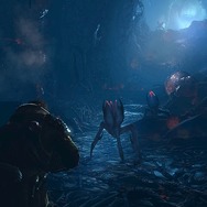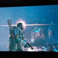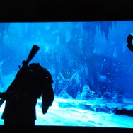 その後、時間が来たのでクロースドデモに移動。世界観やストーリー紹介が中心だったプレイアブルデモと異なり、こちらでは戦闘シーンを中心にデモが進行。前任者が立てたデータポストのチェックのために、洞窟の中を進んでいきます。