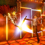 開発スタッフによるデモプレイのため、エンジェルモードとデビルモードの切り替えや、デビルトリガーの発動なども、さすがに手慣れたもの。プレイ中、適合するモードでなければダメージを負わせられない敵や、ダメージを負ってしまう床も見られました。他にゲーム中に搭乗するショップで技の強化などもフィーチャーされています。何度もプレイを重ねながら、自分が格好いいと思えるコンボを追求して欲しいとのことです。