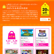期間中、人気のニンテンドー3DSダウンロードソフト・バーチャルコンソールのうち、この1年間で人気が高かったち10タイトルが20%引きで提供されます。