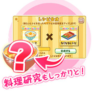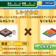 「クック」に新しいレシピを覚えさせ、可愛く進化させていきましょう。また、新しいレシピの開発や、レシピ同士の合成なども行うことができます。