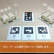 ARプレイカードを使って自分だけのスタジアムを作り、フィギュア状の選手を指で動かしながら遊ぶ、キュートなサッカーゲーム。タッチスクリーンをフリックして動かしたい選手を移動したり、ボールをパスしながらターン制でゲームを進めていきます。アドホック機能で対戦を楽しむこともできます。