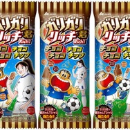 3頭身のガリガリ君と、高橋陽一先生描き下ろしの、アイスを持った楓ちゃんが仲良くパッケージで共演している「ガリガリ君リッチチョコチョコチョコチップ」は、チョコ味のアイスキャンディーの中にパリパリのチョコチップを混ぜ込んだ、濃厚なミルクチョコ味のかき氷入りです。