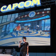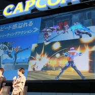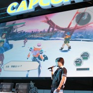 発表以来、続報が待ち望まれていたカプコン期待の新作『エクストルーパーズ』。ステージには本作プロデューサーである小嶋慎太郎氏と、ディレクターの安保康弘氏が登場しました。
