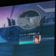 続いて、安保ディレクターの操作による実機プレイが披露されました。アカデミーの中でも、主人公が最初に訪れることとなる「ベース」と呼ばれる場所からスタートし、スパナのようなマークのついた「開発室」、ミッション中に効果の出る飲食が可能な「カフェ」をはじめ、さまざまな情報収集の要となるAIの存在が紹介されました。
