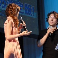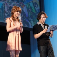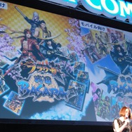 ピンクのワンピースに身を包んだキュートな知念さんを迎え、『ブラウザ戦国BASARA』『戦国BASARA カードヒーローズ』のメイキング映像が上映された。「初めてゲームのPVに参加したので貴重な体験になった」と語る知念さんは豪華かつ可愛らしい朱色の着物に身を包み、髭男爵の山田ルイ53世さんは悪代官、ひぐち君は落ち武者スタイルで楽しく撮影が進む様子が伺えた。コメントのなかで、山田ルイ53世さんは自分に似ているからという理由で武田信玄が好き、それにひぐち君は真田幸村が好きだと続けたと思ったら2人は「幸村-!」「お館様―!」と何度も掛け合い会場の笑いを誘っていた。終始チャーミングな知念さんだが、小林氏に舞台でかすがを演じる時にはガラッとイメージが変わると言われると少し照れた表情を浮かべていた。