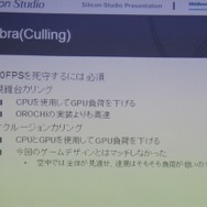 「OROCHI」はシリコンスタジオが開発するマルチプラットフォーム対応のゲームエンジンで、主にハイエンド機の中型~大型プロジェクトを想定し、プロジェクトに応じて柔軟なカスタマイズが出来る事が特徴で、「プロジェクトを成功に導くエンジン」というコンセプトで開発がされました。シリコンスタジオの「YEBIS」「BISHAMON」といった実績のあるミドルウェアが搭載されているのも魅力です。昨年のGDCでお披露目された「OROCHI」ですが、「2」を飛ばしこの度「OROCHI 3」とバージョンアップしています。