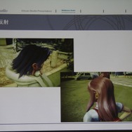 レンダリング関係では動的な陰を焼き込む「SSAO」、木漏れ日のような効果を出す「ゴッドレイ」、髪の毛の表現などに用いた「異方性反射」、人間がワープするような動き「ワープエフェクト」、キャラクターが近づいた時だけ発動するバリア「バリアエフェクト」(バリアの境界線は壊れた建物の上にもきちんと描画されるように、無限の遠景から線を投影した)などの表現手法を新たに追加してもらったそうです。