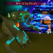 謎の生命体は、デジモンとは異なる構造を持った生命体。デジモンワールドの各地に発生する次元のゆがみから現れるこの生物が、いかなる経緯でこの世界に産み落とされたのかは、現在のところ、不明です。謎の生命体は、デジタルワールドでさまざまなデータを吸収すると、第2形態に成長します。しかし膨大なデータを吸収し続けたためにその形態を維持できず、その体は崩壊しつつあり、より凶暴性を増しています。