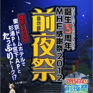「モンスターハンター フロンティア オンライン誕生5周年MHF感謝祭2012」は、「MHF Anniversary 2012フェスティバル」10大キャンペーンのひとつとして9月2日に東京ドームシティプリズムホールにて開催されるイベントです。