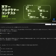 「天下一プログラマーコンテスト 2012」は、ソフトウェアのプログラミング競技大会で、2009年に引き続き第2回目となるものです。回答の正確性と提出までにかかった時間で得点をつけ、最高得点者を優勝としています。