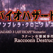 また、連作トレーラー「バイオハザード年代記」も今回で最終回です。『アンブレラ・クロニクルズ』に収録されている『バイオハザード3』のエピソード「ラクーン市壊滅事件」。洋館事件の後、調査のために「ラクーンシティ」に残ったジルはアンブレラ社の傭兵カルロスと行動を共にします。