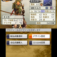プロフィールのデザインを変更できる「デザイン設定」では、キャラクターの背景画像も変更することができます。徳川家康を選択すると「三葉葵」デザインになるなど、武将にちなんだデザインを楽しみましょう。また、すれ違い通信で配信する武器も設定することができます。
