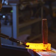 まず、『アサシンクリード3』の手斧はプラズマカッターで型を切り出すところから始まり、「パトリオット」の手斧は材料を合わせて鍛えるところから始まります。お互いの職人同士でも火花を散らしつつ、地道に形を整えていきます。