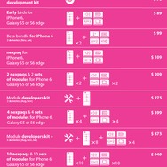 自分で機能を作成して使いたいというクリエイティブな方には、iPhone6ベースの275ドルの開発キットか、iPhone用ケース4個とGALAXYシリーズのケース4個を含めた875ドルのフル開発キットがおすすめです。2015年6月中の早期発送を予定している2999ドルのプレミアム開発キットのプランはプロトタイプのカバーと、すべての追加パーツが含まれます。それ以外では販売者向けのプランやチームとディナーを共にできるプラン、アプリを開発するためのSDKキットのプランなどがあります。