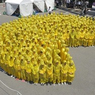 まず1枚目は、パックマンが口を開け閉めする映像の撮影のパネルを持った参加者を空撮した写真だ。すでにパックマン独特の黄色く口のある姿がくっきりと作られている。