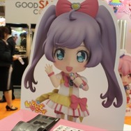 ブースに登場したのは『プリパラ』の「ねんどろいどこ~で」のフィギュアである。主人公の真中らぁらをはじめ、南みれぃ、北条そふぃらを実際に手に取って遊べるかたちになっている。さらにレオナ・ウェスト、ドロシー・ウェスト、東堂シオンも展示されている。1/7スケールの真中らぁらのフィギュアも展示されていた。
