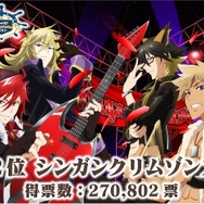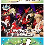 そして2位は、1位からわずか35票差の27万802票でシンガンクリムゾンズがつけた。シンガンクリムゾンズは、音楽とバンドがテーマのプロジェクト「SHOW BY ROCK!!」に登場する人気のロックバンドだ。“中二病全開のヴィジュアル系ロックバンド”がコンセプトとユニークな設定だ。クロウ、アイオーン、ヤイバ、ロムの4人から構成され、女性に人気が高い。