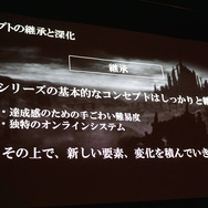 「コンセプトの継承と深化」としては、達成感を得るために手強い難易度や独特のオンラインシステムは継承し、その上で新しい要素と変化を積んでいくとしています。本作では、剣戟バトルのアクション戦術と多様性と深めつつ、ロールプレイングゲームとしてのキャラクタービルドの幅の拡張を行うとのことです。