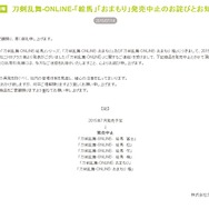 ■刀剣乱舞-ONLINE-「絵馬」「おまもり」発売中止のお詫びとお知らせ
