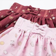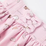 クッキーリボンスカートは変身後のソウルジェムをアイシングクッキー風に描いた柄がちりばめられた。マミのケーキやティーカップも取り入れられている。リボンやレースが可愛らしさを演出する。7,800円(税別)。