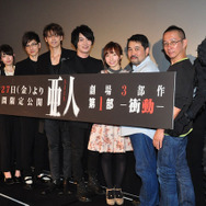 大人気漫画「亜人」の劇場版アニメの第1部『亜人 -衝動-』が10月28日(水)、東京国際映画祭でプレミア上映され、声優の宮野真守、細谷佳正、櫻井孝宏、平川大輔、小松未可子、洲崎綾に、総監督の瀬下寛之、安藤裕章監督が上映後の舞台挨拶に登壇した。
